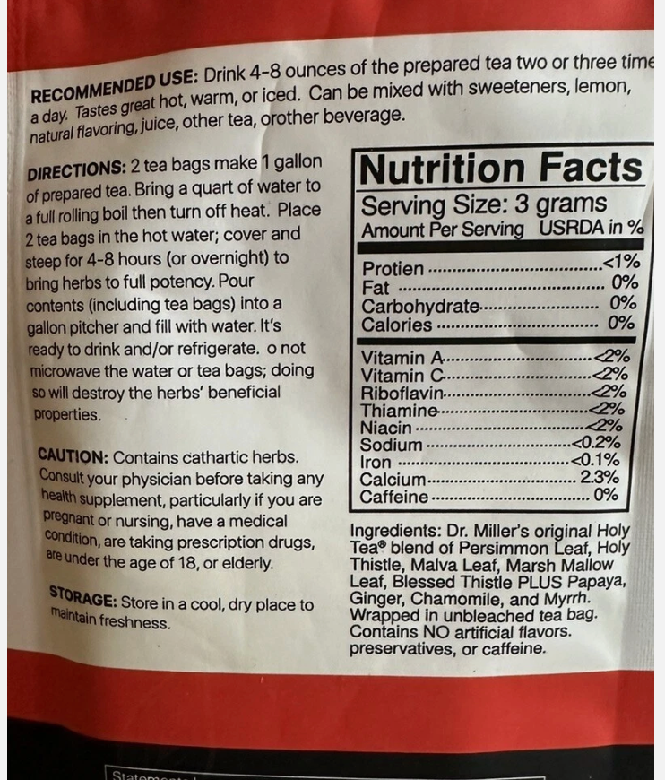 DETOX Tea Caffeine-Free Holy Tea Blend Natural Cleansing 2 Tea Bags