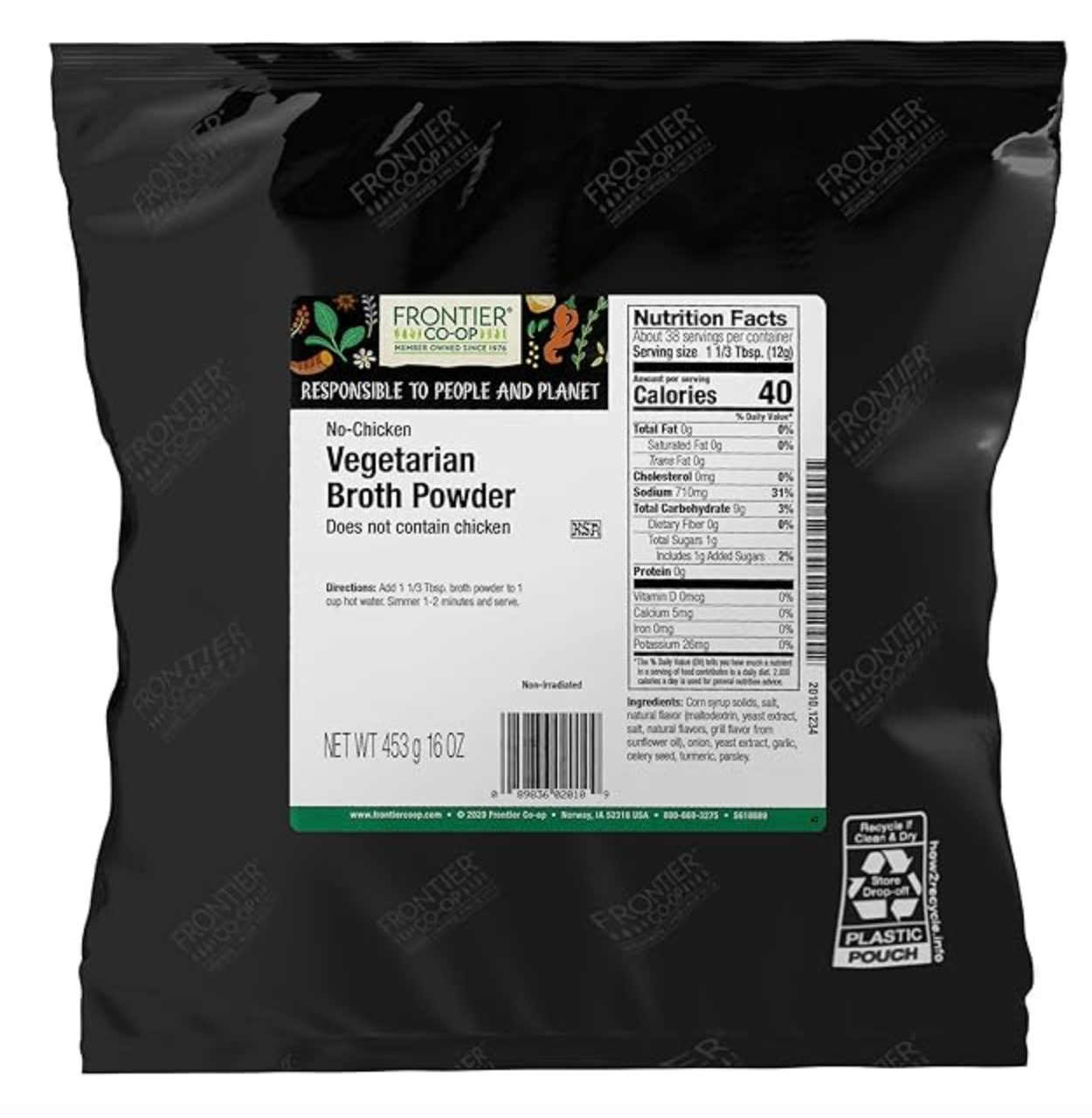 Frontier Co-op Vegetarian Broth Powder, 1lb - Vegan, No-Chicken, Veggie Alternative to Bouillon Powder - Bulk Bag, Shaker Refill, Restaurant Supply - Expired Aug 2025