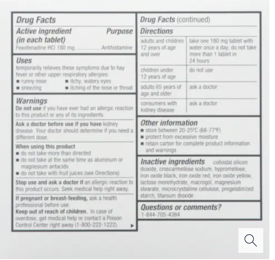 Harris Teeter™ Fexofenadine HCI 180mg Allery Relief Tablets - Expires 11/2027 aka generic alexa