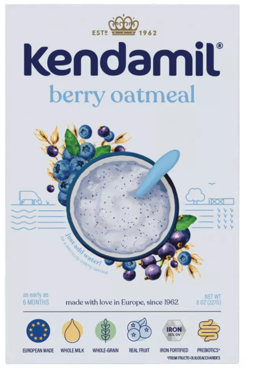 Crafted in Europe, Kendamil’s Mixed Berry Oatmeal baby cereal harnesses the goodness of nature to support your little one’s next stage of growth. Kendamil proudly partners with the finest European farms and suppliers for our ingredients. Starting with high-quality, non-GMO whole grain oats, naturally creamy European whole milk, and real fruit, our Mixed Berry Oatmeal offers a delicious breakfast—just add water!