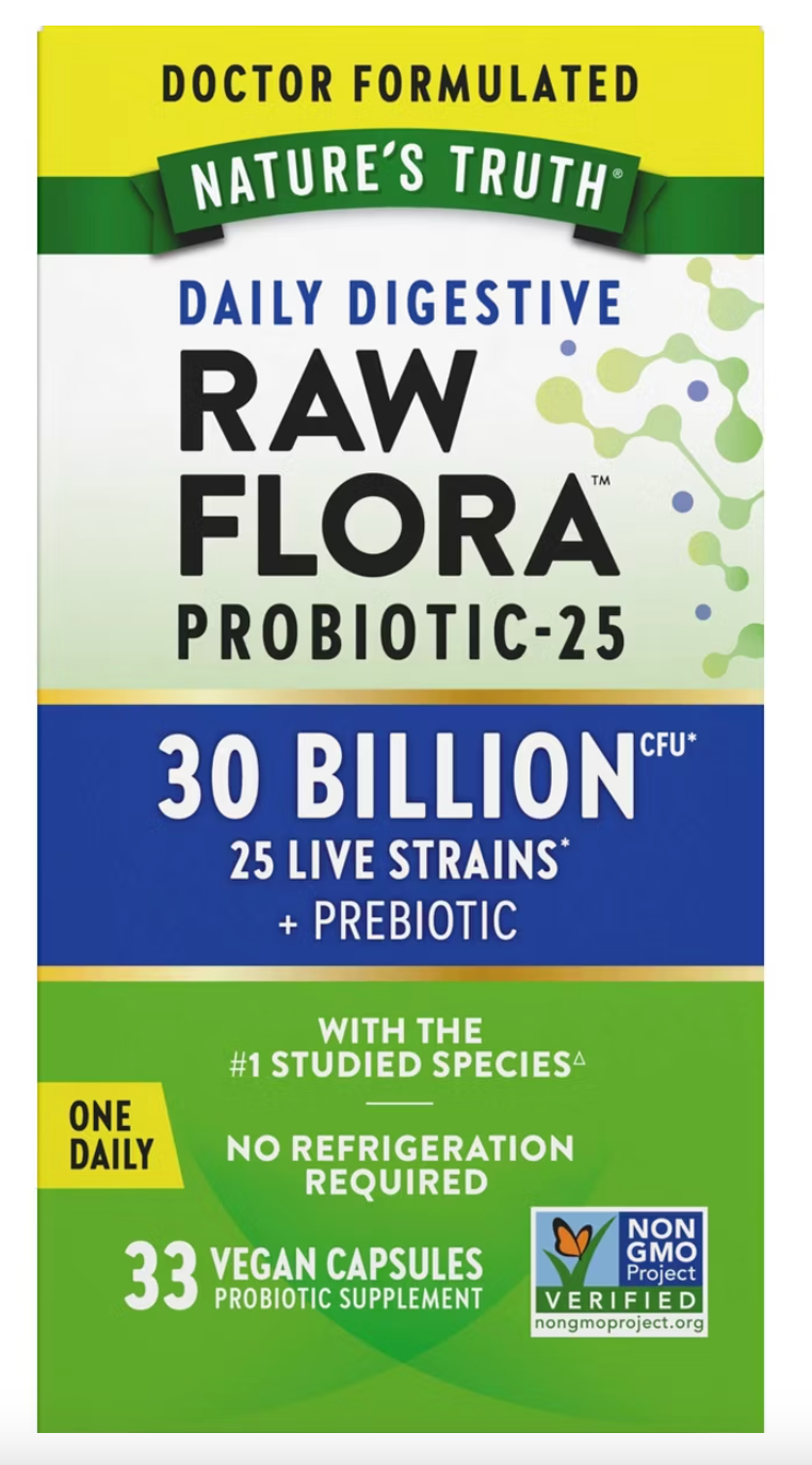 Raw Flora is a doctor-formulated probiotic developed to target key areas of health in adults – gut health, digestive wellness, and more. Raw Flora offers billions of CFUs (colony-forming units) in every capsule from four probiotic genera (Lactobacillus, Lactococcus, Bifidobacterium, and Streptococcus). Daily Digestive Raw Flora Probiotic-25 delivers 30 billion CFU* (colony-forming units) of restorative probiotics in one vegan capsule. This powerful probiotic for men and women features 25 diverse live strains including Lactobacillus rhamnosus, the #1 studied species. One capsule daily also provides organic prebiotic support from inulin, a type of plant fiber that acts as food for probiotics in the gut. Daily Digestive Raw Flora Probiotic-25 is vegan, non-GMO, and free of gluten, wheat, yeast, milk, lactose, soy, artificial flavor, artificial sweetener, and preservatives. Nature’s Truth vitamins and supplements was born out of a passion for healthy living and a dedication to sharing unique wellness solutions with the world. Over the years, Nature’s Truth has led the industry with new innovative products that contain trending ingredients consumers want and need. Discover Nature’s Truth – where your wellness journey begins.